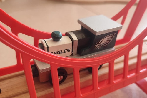 Hace unos días le regalaron a mi hijo un tren de madera de los Philadelphia Eagles. El típico de vías encajables, sencillo y resistente. Pero con el escudo y los colores del equipo. Me pareció una idea brillante. Y pensé: ¿por qué aquí no hacemos cosas así?